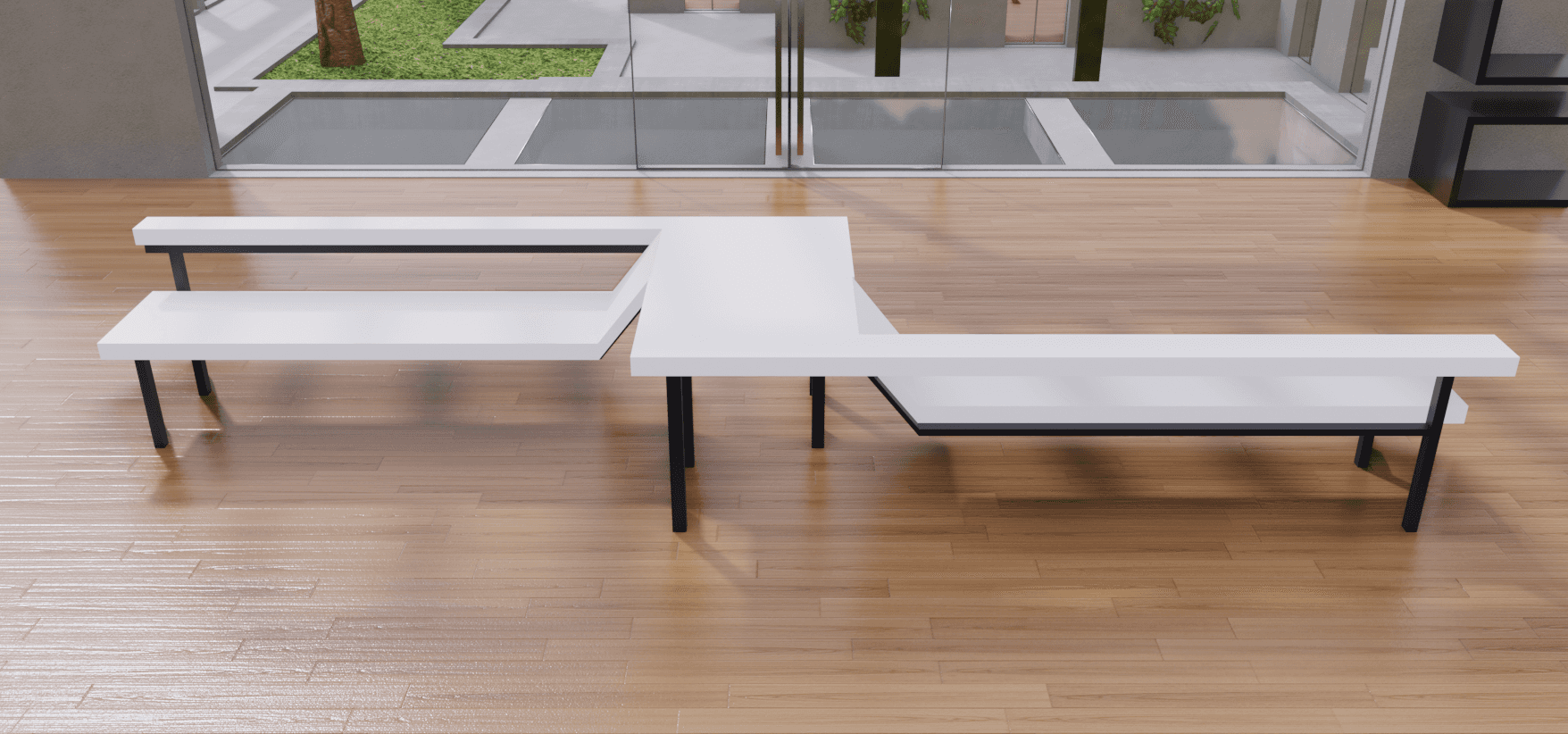 To communicate the furniture's configurable nature, I employed 3D modeling to develop the entire collection digitally, creating rendered visualizations demonstrating system flexibility beyond existing physical prototypes. This approach enabled consistent presentation across all brand materials.